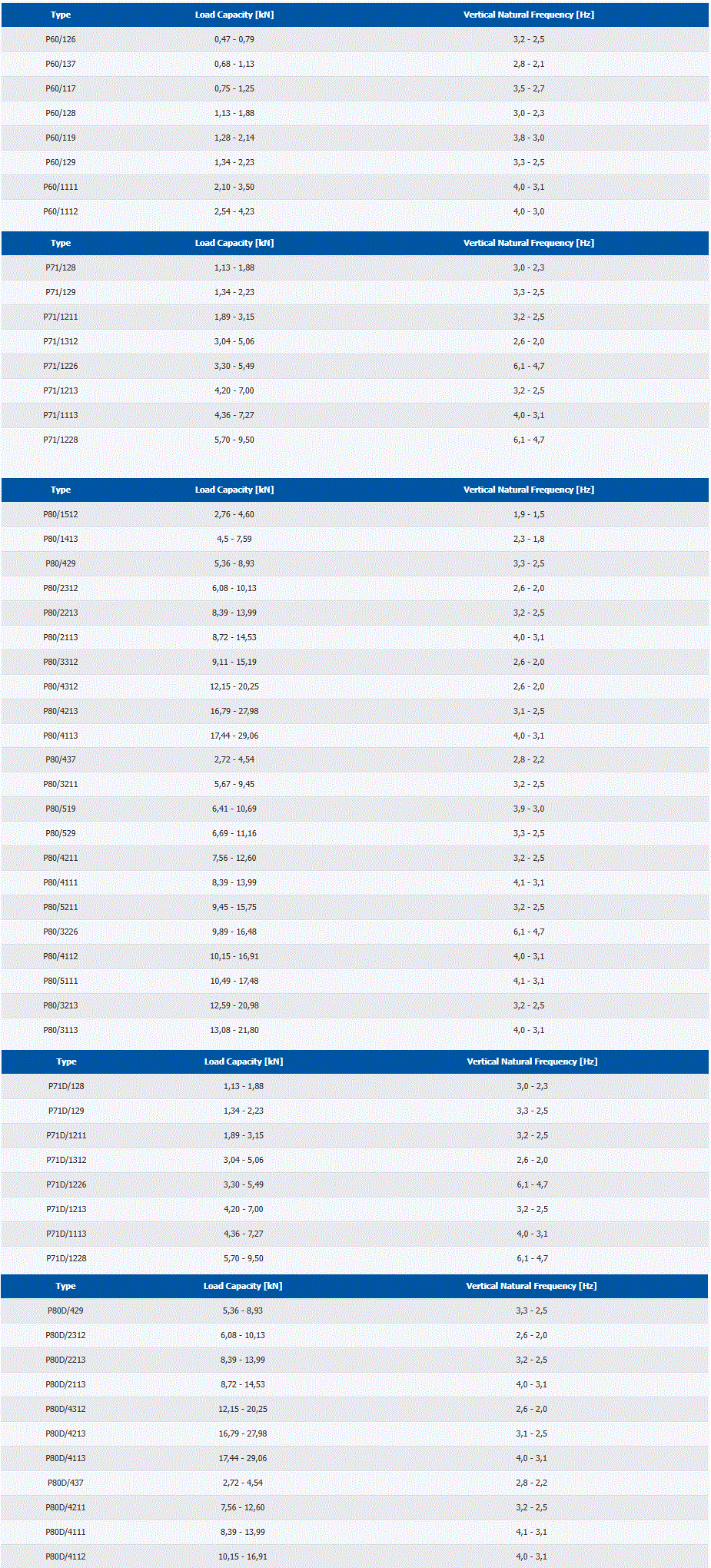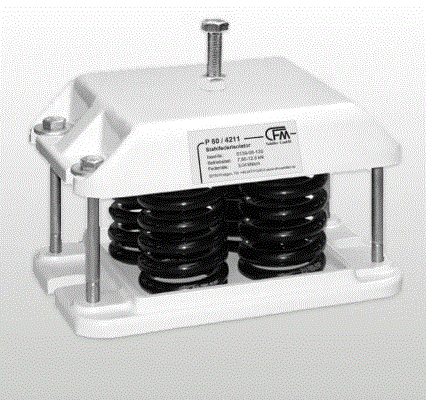 The CFM Steel Spring Isolator type P is one of the most compact steel spring isolators. The models P71D and P80D feature an integrated viscous damper. Depending on the size and model, the natural frequency ranges from 1.5 Hz to 6.1 Hz. The steel spring isolator type P can be operated in a load capacity range of up to 29 kN per isolator.