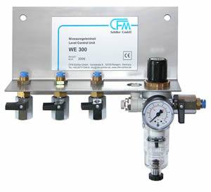 This cost-effective supply unit disposes of the basic functionality to run a vibration isolation system. The input pressure can be adjusted, the water can be drained from the compressed air and the maintenance unit can be separated from the supply pressure by a ball valve. The air flow to the air springs can be adjusted by an adjustable throttle valve. Each sub systems can be exhausted by a ball valve.